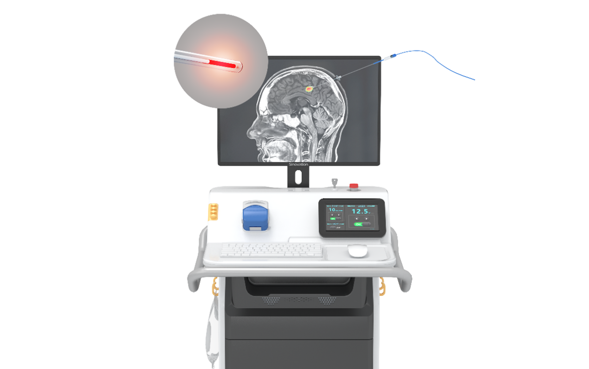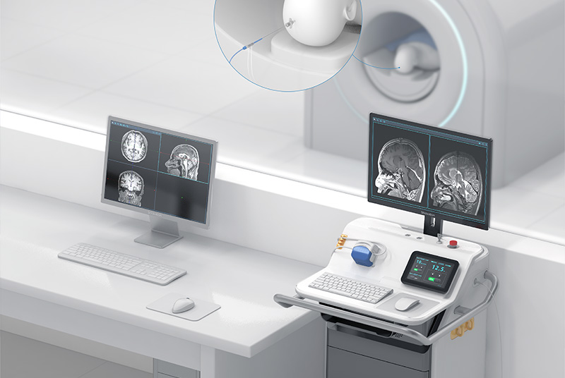 其核心技術(shù)為磁共振引導(dǎo)的激光間質(zhì)熱療術(shù)(MRgLITT),是一種針對多種顱內(nèi)病變的新型微創(chuàng)治療技術(shù),將傳導(dǎo)激光的光纖精準(zhǔn)置入到顱內(nèi)病灶位置,通過激光照射加熱周圍組織產(chǎn)生可控的熱損傷,實現(xiàn)治療目的。